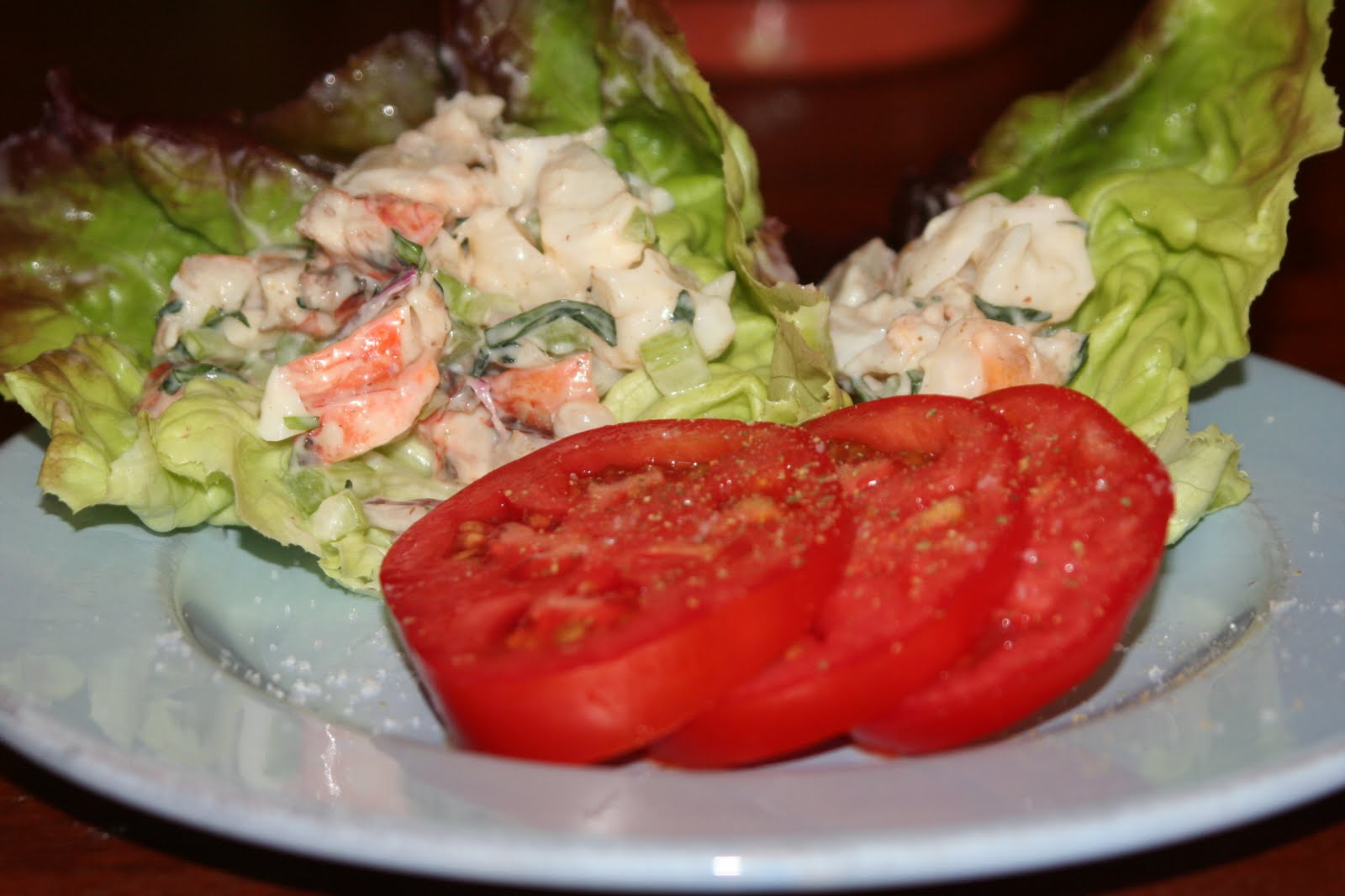 The CSA farm service had delivered red bib lettuce, luscious tomatoes, and red onion; grilled lobster waited in the refrigerator to be reinvented; I was daydreaming about the Hamptons, and it was lunchtime. With a little Food Madonna inspiration, a very nutrient-rich meal emerged.