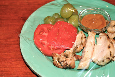 I plated last night’s leftovers on one stage in hope of a third performance – lemon chicken with peanut sauce, farm-fresh tomatoes and green grapes. If it looks like a meal, smells like a meal, it must be a meal – right? Will my husband reach for this, instead of chips? Anyone have good ideas for making your real food leftovers more desirable in the fridge?